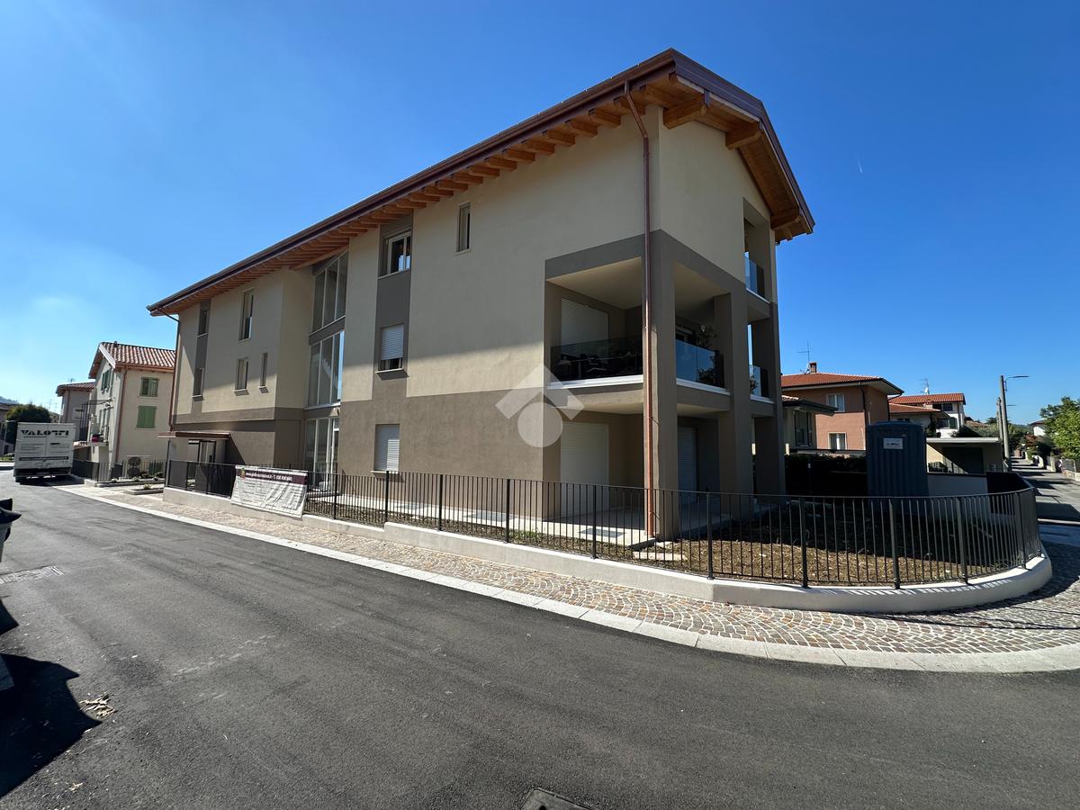 MOMPIANO In zona tranquilla, proponiamo in vendita esclusivo appartamento di nuova costruzione posto al piano terra valorizzato dal giardino di proprietà. L'immobile fa parte di una palazzina di nuova costruzione costituita da soli 4 appartamenti. L'esclusivo immobile si trova al piano terra ed è valorizzato dall'area esterna di pertinenza caratterizzata dal portico e dal'area esterna privata parzialmente pavimentata. L'ampia zona giorno è con cucina a vista e si affaccia sull'area esterna. Due le camere da letto di cui una con bagno privato. Un secondo bagno finestrato completa il piano. Tramite una scala interna si accede all'ampia taverna caratterizzata da un terzo servizio ed una zona lavanderia. Di pertinenza esclusiva garage doppio in larghezza al piano seminterrato con basculante elettrica. Riscaldamento a pavimento ed aria condizionata in ogni stanza.