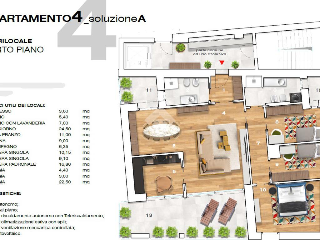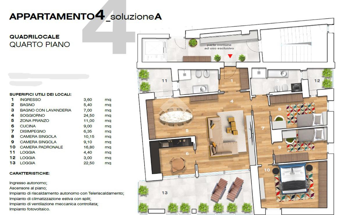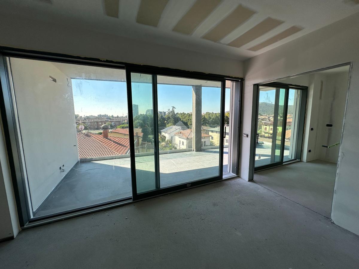 ZONA NORD proponiamo in vendita esclusivo attico di nuova costruzione al quarto ed ultimo piano in contesto di sole quattro unità abitative valorizzato dalla terrazza panoramica al quinto piano. L'immobile è servito da ascensore con chiave che accede direttamente all'abitazione. Un doppio blindato, sia dal vano scale che dall'ascensore garantisce sicurezza e tranquillità. Trattasi di quadrilocale di buona dimensione interna caratterizzato dalle logge private oltre che dalla terrazza panoramica. L'ampia zona giorno con cucina separata ed abitabile accede alla loggia principale dotata di split che permette di riscaldarla e viverla anche nelle stagioni più fredde. Le camere da letto sono tre e due i bagni di cui uno con con accesso alla loggia comune ad una camera. Tramite una scala esterna si accede all'esclusiva terrazza di circa 70 mq valorizzata dalla vista panoramica sulla città dove è possibile realizzare una piscina privata. Di pertinenza esclusiva al piano terra un'ampia cantina di 16,50 mq, un posto auto esterno ed un'autorimessa doppia in larghezza. A valorizzare il complesso di nuova costruzione sono presenti degli ambienti comuni siti al piano terra tra cui un locale multiuso da poter adibire a sala riunioni, un bagno ed un locale rifiuti. L'appartamento, completamente autonomo, è dotato d'impianto di climatizzazione con split, il riscaldamento a pavimento è con il presente inoltre la ventilazione meccanica controllata ed anche l'impianto fotovoltaico. Le finiture di pregio valorizzano l'esclusiva soluzione immobiliare. Tutti i servizi sono nelle immediate vicinanze tra cui la fermata della metropolitana.