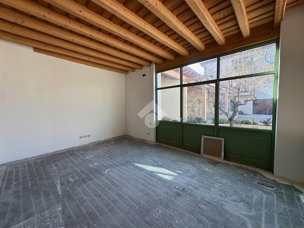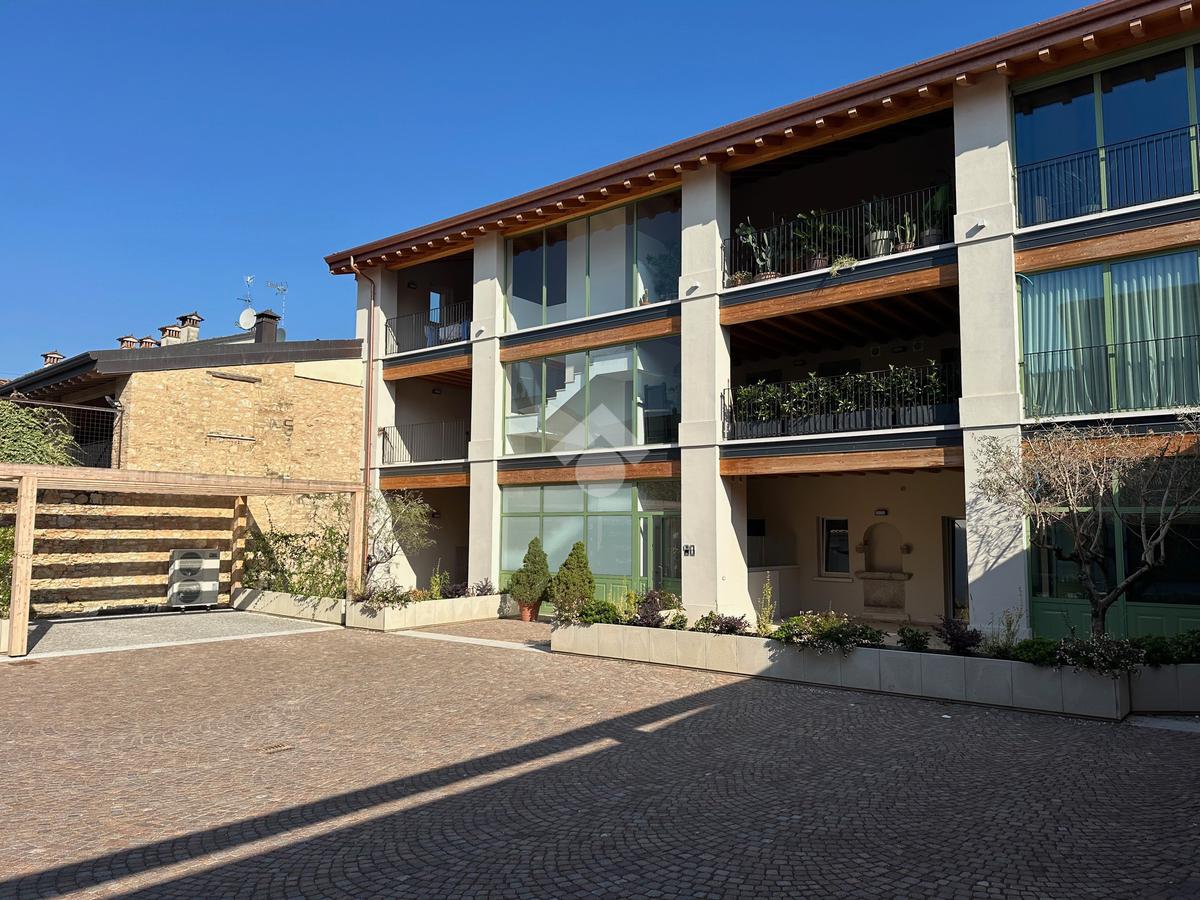 MOMPIANO Nel cuore del nucleo storico del quartiere, si propone in vendita esclusivo appartamento quadrilocale posto al piano terra in cascina ristrutturata a nuovo. Il portico privato e le porzioni di giardino fronte e retro abitazione valorizzano l'immobile. L'appartamento è caratterizzato dall'ampia metratura interna. La cucina è a vista ed il soggiorno è valorizzato dall'ampia vetrata esposta a Sud con accesso al portico esterno di pertinenza esclusiva. Tre le camere da letto di cui la matrimoniale con possibilità di cabina armadio e bagno padronale finestrato. Un secondo servizio finestrato ed una comoda lavanderia completano il quadrilocale. Di pertinenza esclusiva due posti auto coperti con accesso diretto al giardino sul retro della casa. Finiture e materiali di alta qualità caratterizzano l'appartamento e le moderne soluzioni tecnologiche impiegate garantiscono eccellenti prestazioni energetiche grazie all'installazione di impianti fotovoltaici sul tetto dell'edificio. Il riscaldamento autonomo è a pavimento e l'appartamento viene consegnato con aria condizionata con split in ogni stanza. Le finiture interne si possono scegliere dal capitolato. L'unità abitativa permette di usufruire di detrazioni fiscali.