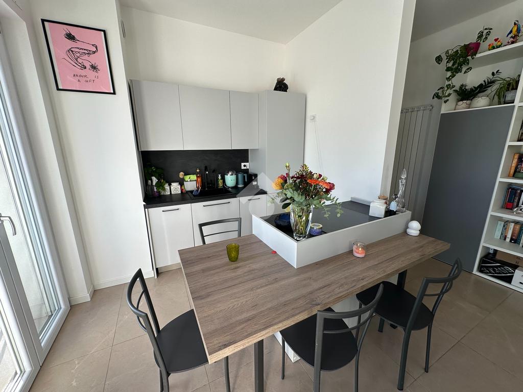 MOMPIANO A pochi passi dalla fermata della metropolitana e dalle facoltà universitarie, proponiamo in vendita bilocale di recente costruzione posto al terzo ed ultimo piano in contesto servito da ascensore. L'appartamento è caratterizzato da una buona suddivisione dei suoi spazi interni: la zona giorno con cucina a vista è caratterizzata dalla doppia portafinestra con accesso all'ampia balconata, il bagno con box doccia è finestrato e la camera matrimoniale, anch'essa con portafinestra ed accesso al balcone, è caratterizzata da una comoda metratura interna. L'immobile si presenta in ottimo stato conservativo ed è pronto per essere abitato. Il riscaldamento è con teleriscaldamento e l'appartamento è dotato dell'impianto di climatizzazione con due split. Di pertinenza esclusiva al piano seminterrato un ampio garage ed una comoda cantina. La tipologia d'immobile, il contesto di recente ristrutturazione, la posizione limitrofa a tutti i servizi ed agli spedali civili rendono l'appartamento particolarmente interessante per essere acquistato ad uso investimento.